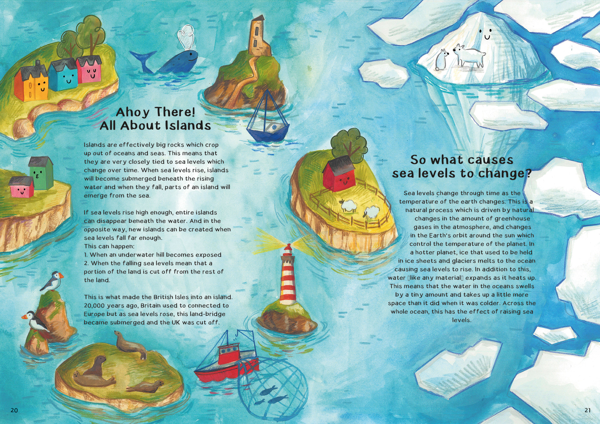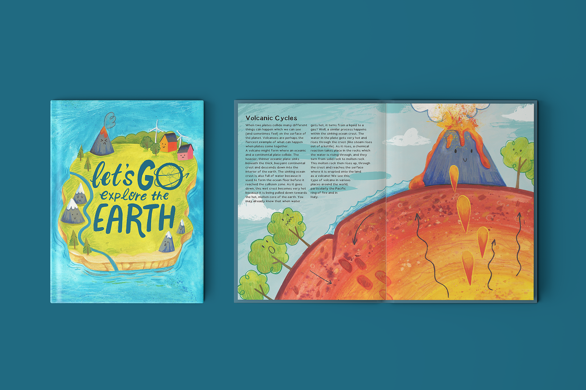 'GeoGO' is a collaboration between myself and Earth Science masters student (and my boyfriend), Greig Boulstridge. Greig wrote the manuscript and worked with me along the process of creating this book to help me create compelling and informative illustrations. The book covers topics such as volcanoes, the cryosphere, island formation, and global warming. My goal was to disrupt the current offerings of children's books about earth science and create a book that was playful and approachable, to capture the imagination of children and help them better understand the world around them.